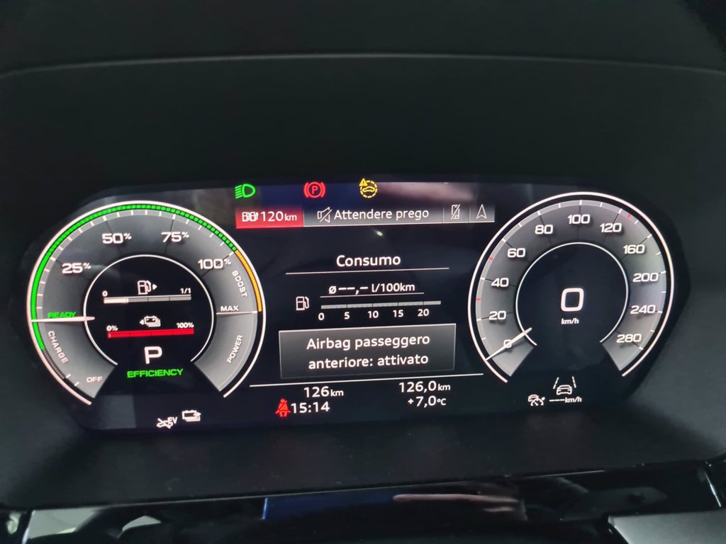 Altri optionals in dotazione: Chiave Comfort / Cavo Mode 3 per ricarica pubblica / Volante multifunzione plus in pelle / Pacchetto evolution / Audi Virtual Cockpit Plus / Elementi in look alluminio per interni - 5 posti - Apple CarPlay/AndroidAuto - Climatizzatore Bi-Zona - Quadro Strumenti Multifunzione - Hill Holder - Keyless - Vetri elettrici posteriori - Fari automatici - Alzacristalli elettrici - Computer di bordo - Indicatore temperatura esterna - Vernice metallizzata - Sensori parcheggio // // La dotazione tecnica e gli optionals potrebbero in alcuni casi differire dall'effettivo equipaggiamento della vettura. Si declina ogni responsabilita' per eventuali involontarie incongruenze che non rappresentano un impegno contrattuale.